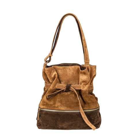 Suede bucket bags in earthy tones – panel bags in the trendiest shades of brown. Also available in the Chanel-inspired color combination – sleek black with a touch of cream.
