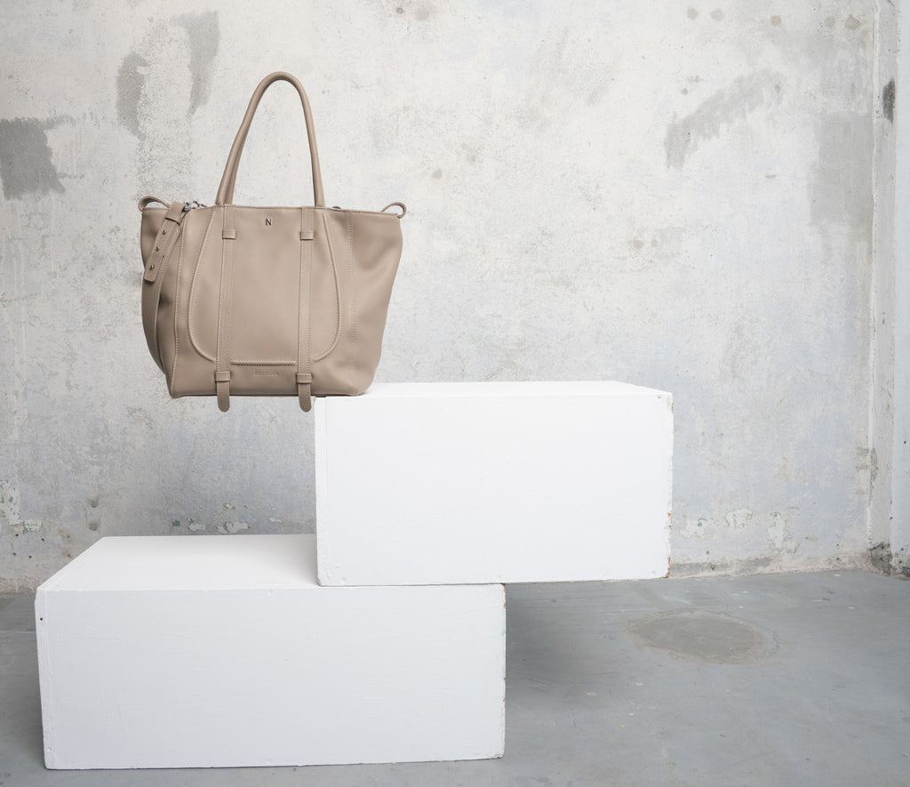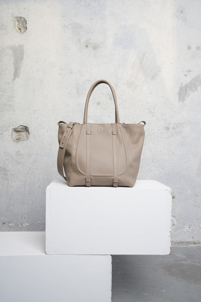 This classic tote bag with signature decor will spice up your minimalistic wardrobe. You can have two bags in one by wearing it both sides and changing its shape. This timeless piece is versatile and can be carried as a shoulder bag by the comfortable top handles or cross-body by the long strap. You can play with its shape and convert it from a shopper to a closed carryall. It has a soft feel and has a reinforced bottom for extra structure.