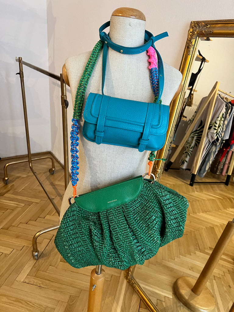 Discover the charm of our handwoven straps, created in collaboration with a Spanish artist. Each strap is an original work of art, born from a passion for craftsmanship. This handbag strap is a unique accessory that transforms even the most classic bag into an exceptional wardrobe piece. The long strap can be worn crossbody or on the shoulder and offers comfortable wear. It fastens with SOLECKA X NOVINSKA logo-engraved ring carabiners.