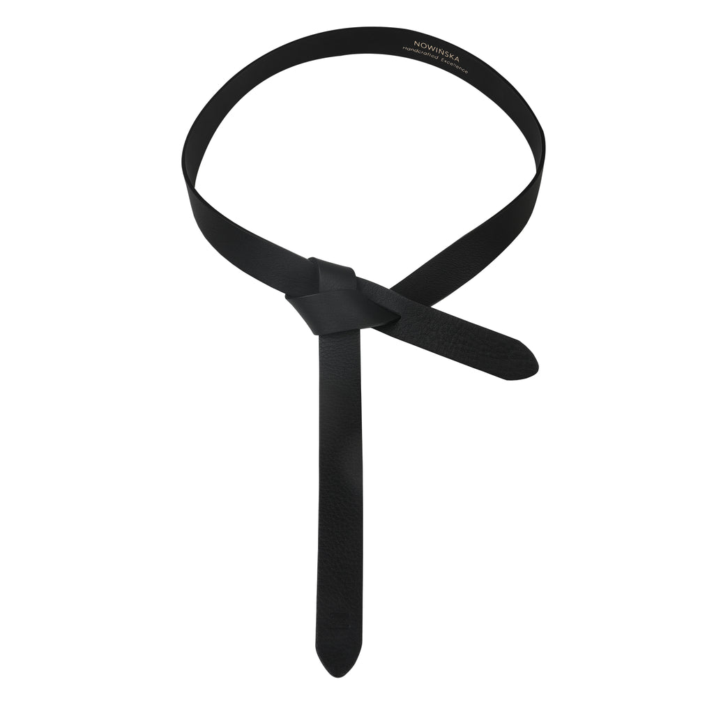 This relaxed style belt fastens with a wraparound knot that allows you to adjust the size to fit you easily. Cut out from one piece of supple Italian leather, the design has an adjustable fit with a knotted detail and tapered ends. Featuring embossed N logotype on one end. Inside was made from the same quality leather and features a gold-tone embossed logo. Crafted in Poland by a family own workshop that mastered the art of belt making finessing the smallest details in a thoughtful and sustainable way.