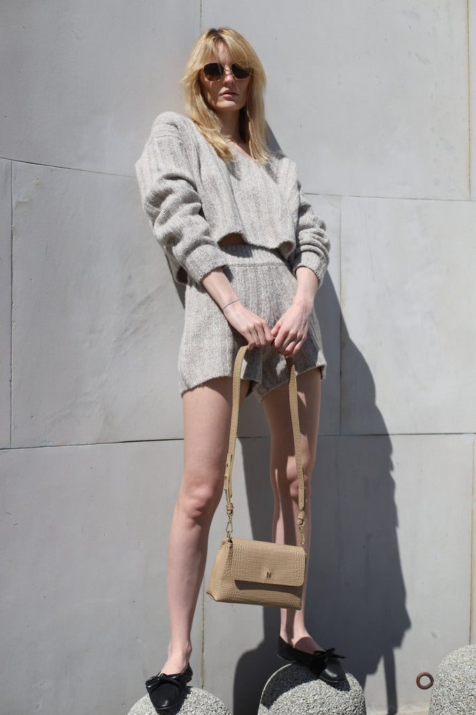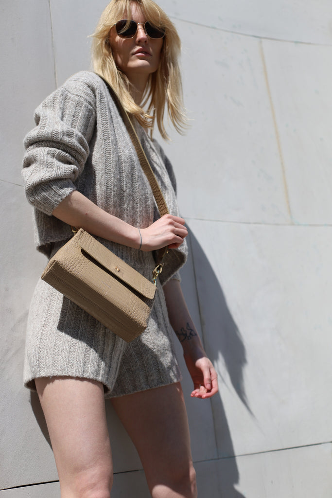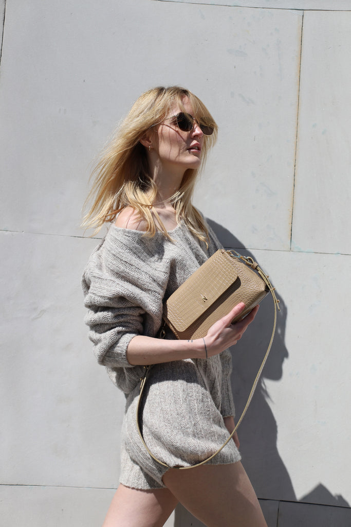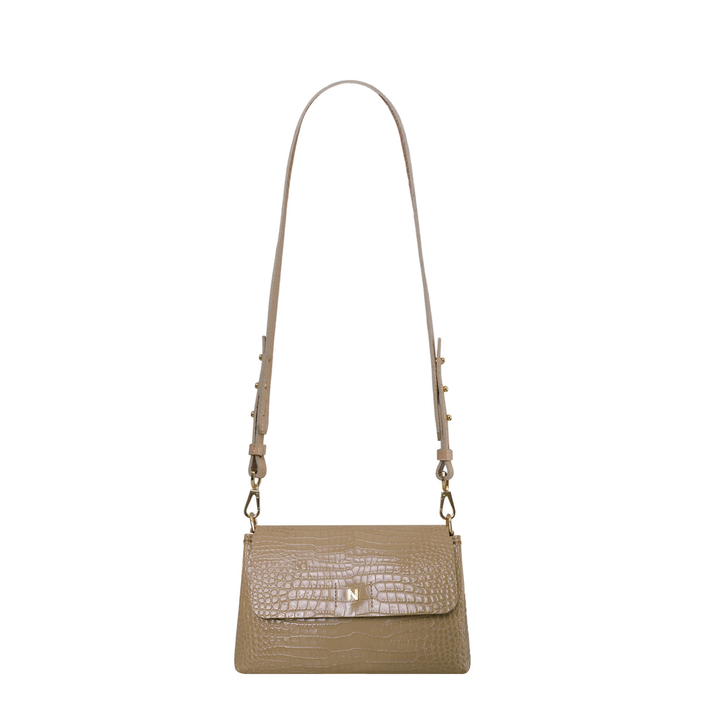 Our bestselling small flap bag made from glossy leather with croc-effect. Comes with an adjustable length wide strap. Wear it cross-body or as a shoulder bag and it will become a staple in your wardrobe.