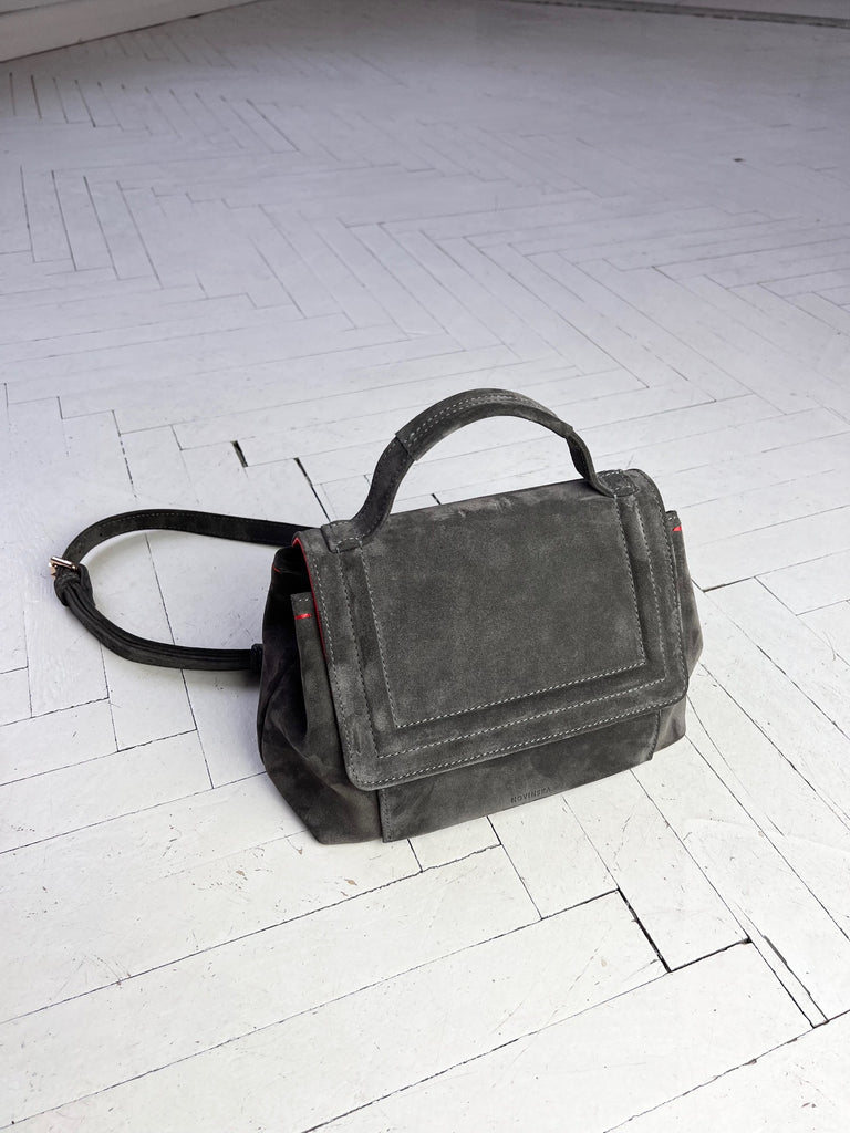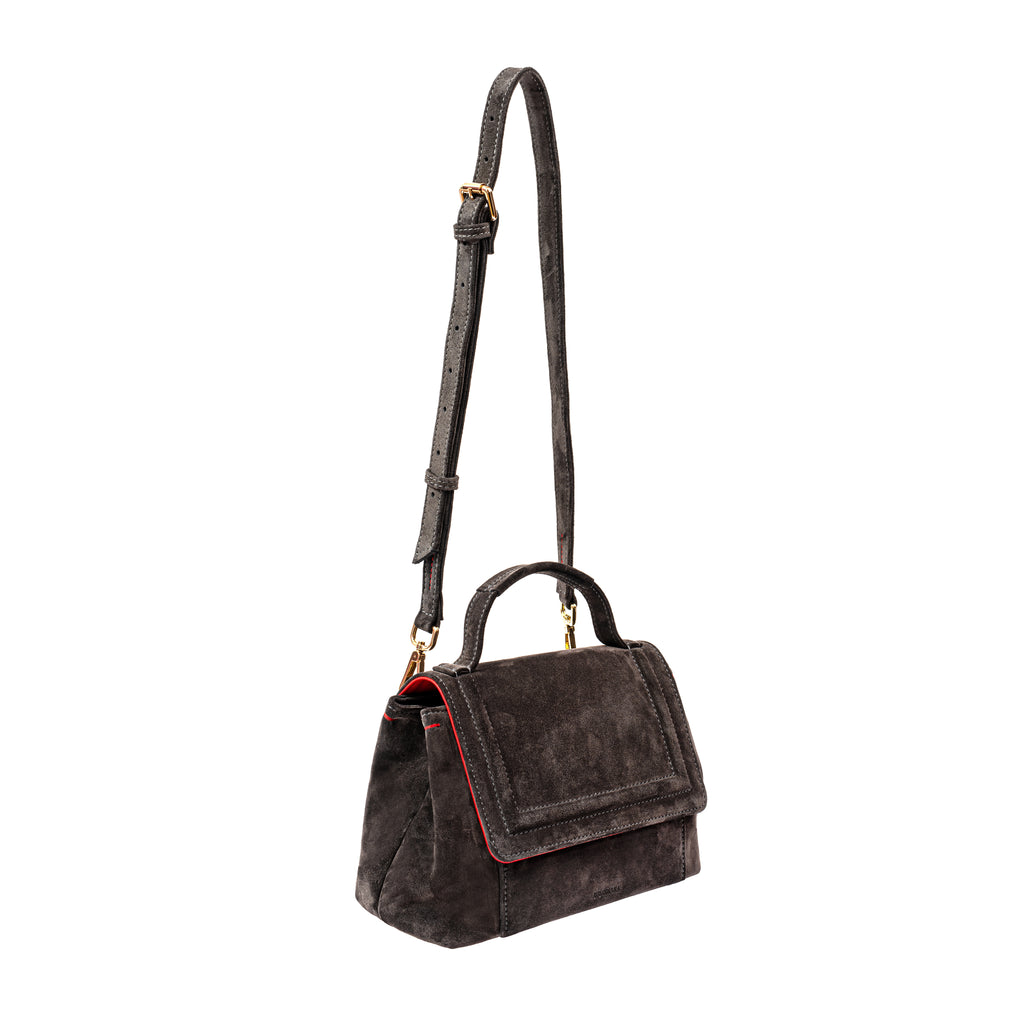 Designed with style and functionality in mind, this bag is a true marvel. Elevate your closet with this versatile, suede leather beauty in grey color, and experience the perfect blend of fashion and function. Despite its modest dimensions, our midi bag surprises with its impressive capacity thanks to its wide and structured bottom. The semi-structured design maintains its shape while offering a degree of flexibility. You can carry it by the top handle or cross-body without compromising on comfort. Made with the finest quality bovine suede leather and trimmed with smooth leather color neon coral.