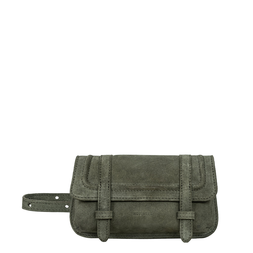 NOVINSKA's best-selling signature belt bags, capturing the hearts of fashion enthusiasts worldwide. This mini bag, celebrated for its sleek and compact design, seamlessly transforms to suit your style in two distinct ways: as a chic cross-body accessory or worn around the waist. Adapting effortlessly to your daily needs, we meticulously finesse every detail with a focus on sustainability. The flap is adorned with our distinctive signature ornament, and the leather is intricately cut in line with zero-waste principles. Crafted from sumptuous suede leather, this versatile bag is the perfect complement to white shirts, boho dresses, or slouchy knitwear, adding a touch of spice to any outfit.
