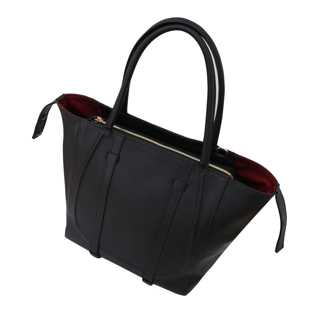 Our new tote, No. 288, features front decorations characteristic of the SADDLE collection. It adds an extra touch to spice up your classic wardrobe, and it's like having two bags in one, as it can be worn on both sides. This timeless piece embodies quality, functionality, and sleek design, making it durable and versatile. You can carry it as a shoulder bag using the comfortable top handles or on a long canvas strap. Its shape is adjustable, allowing you to convert it from a carryall to a closed shopper effortlessly. Additionally, you can unwind the playful button straps and wear them outside the bag for added flair. As elegant as it is practical, this tote is made to last, featuring a reinforced bottom for extra structure.