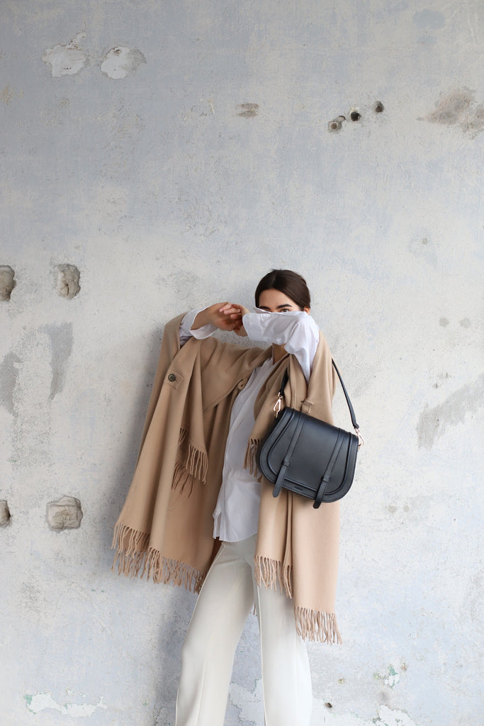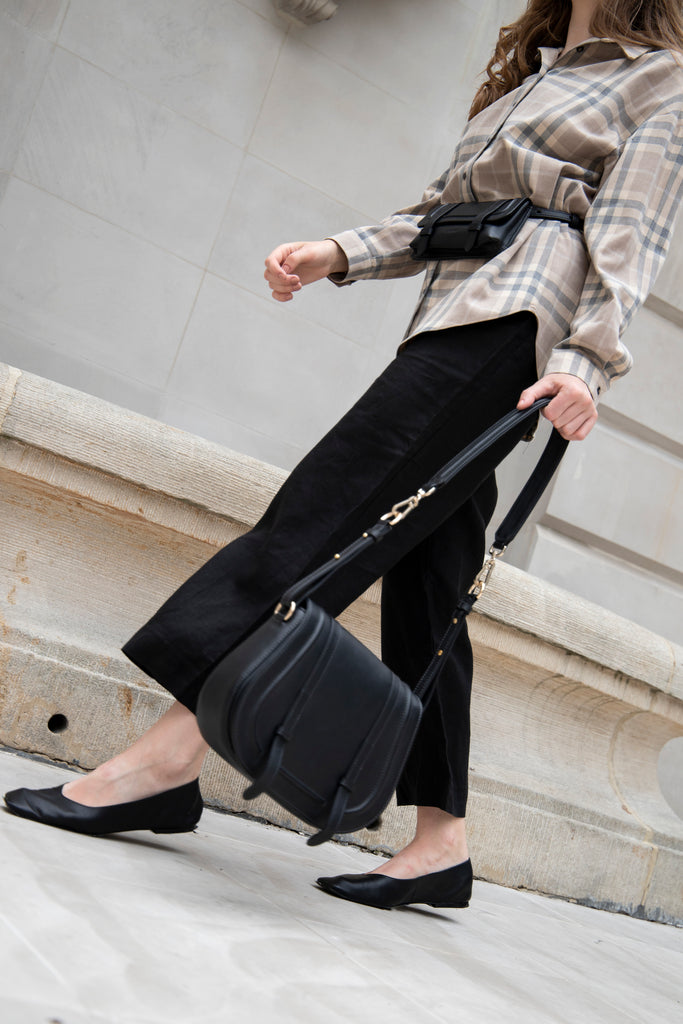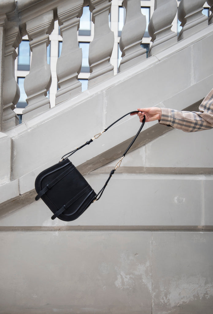 This large saddle bag is crafted in our brand’s signature saddle silhouette, featuring exquisite decor finishings. We’ve perfected this design to showcase our expert craftsmanship. Every detail, no matter how small, makes a significant impact. The structured bag is made from buttery smooth leather and comes with two versatile straps, allowing you to carry it either by the wide handle under your shoulder or as a crossbody. Whichever way you choose, it looks like a million-dollar purse.