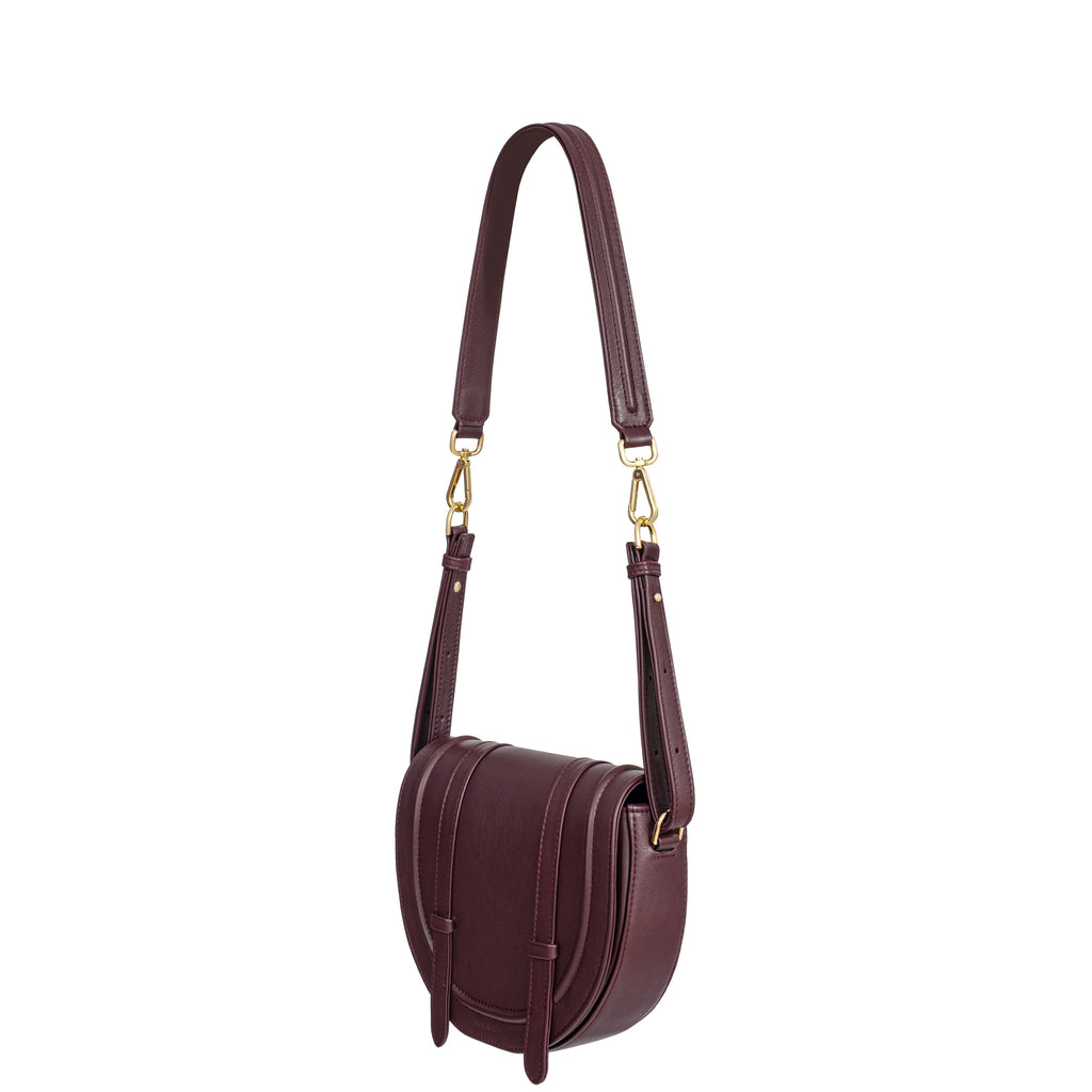 Our iconic half-moon-shaped handbag from the NOVINSKA Saddle line embodies timeless elegance with its signature decorative elements. It is crafted from the finest quality smooth leather. The compact silhouette is designed to hold your daily essentials, while the sleek flap front with a snap-button closure ensures both style and security. This luxurious piece offers versatility with a removable crossbody strap that easily transforms into a short handle for under-the-shoulder wear. From the fine leather to the exquisite craftsmanship, every detail speaks to the elevated quality and sophisticated design of the NOVINSKA Saddle line.