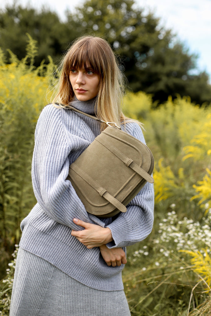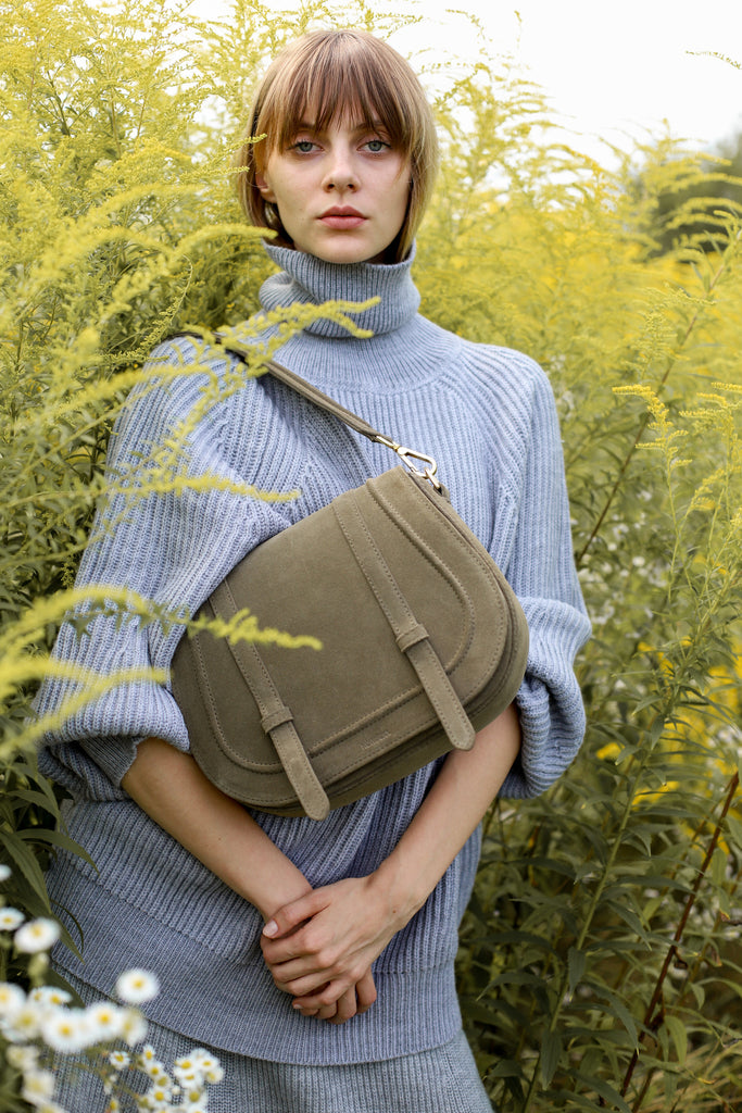 This large saddle bag is crafted in our brand's signature saddle silhouette with ornaments on the front flap. It was designed to carry your daily essentials and crafted to be a structured bag yet have a soft feel at the same time. There are 2 ways to carry: by the short, wide handle under your shoulder or cross-body with the leather strap. Adjust its length to your needs. Either way, it looks like a million-dollar purse.