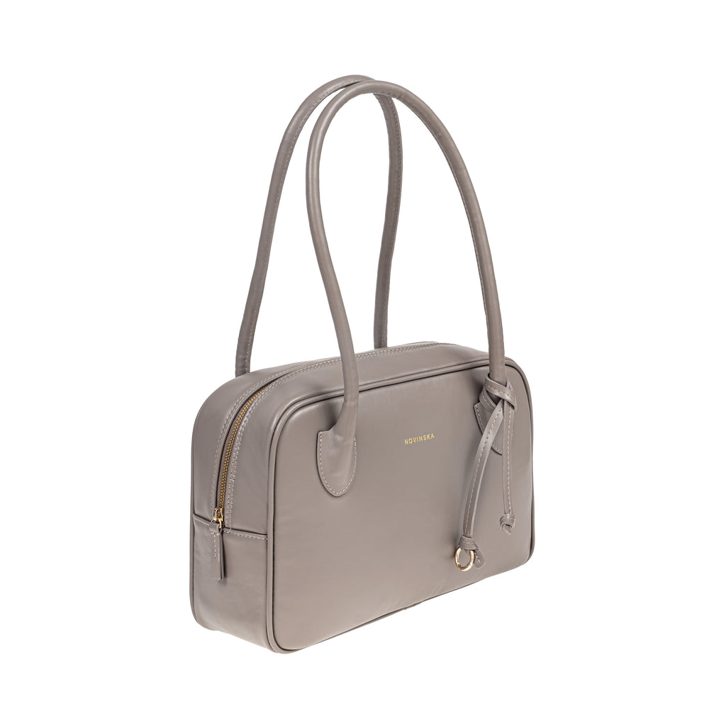 The Medium Bowling Bag, with its sleek rectangular-trapezoidal shape, blends elegance with practicality. Made from the finest quality smooth leather, it stands out for its craftsmanship. The long, comfortable handles are crafted with precision, making it easy to carry on your shoulder. The bag opens with a zipper, offering easy access to its spacious interior. It’s soft yet maintains its shape, even when empty. With its subtle details and perfect proportions, the Medium Bowling Bag fits perfectly with the latest trends, while remaining a timeless piece for any season. A charming touch is the decorative leather pendant, finished with a metal ring.