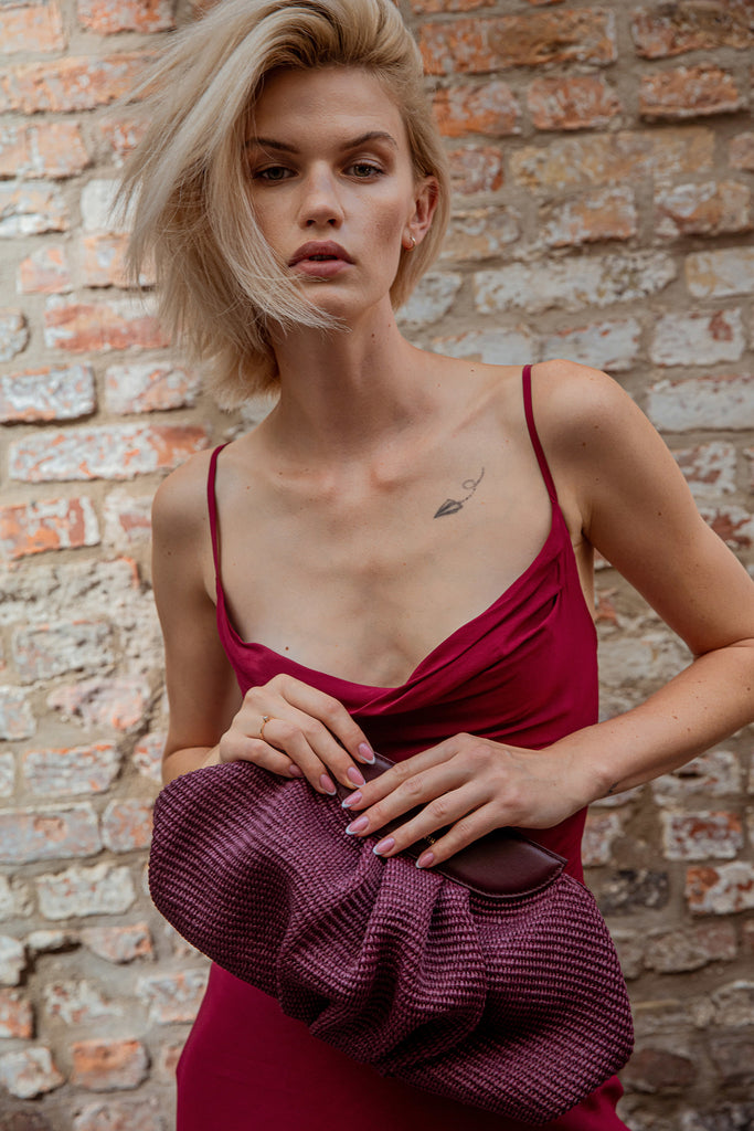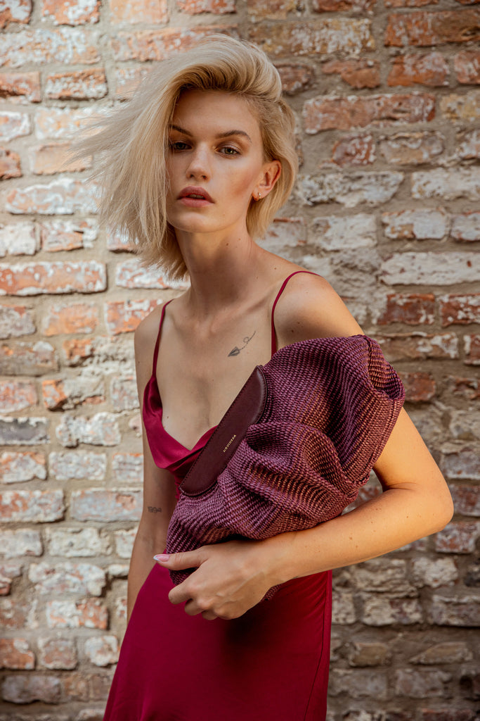 Raffia Cloud Bag - Burgundy