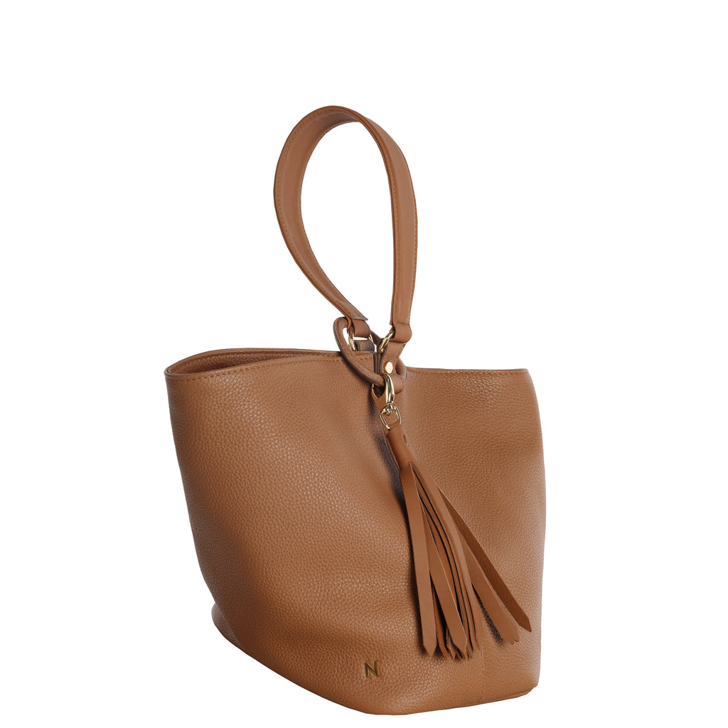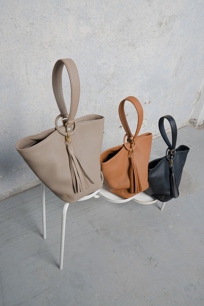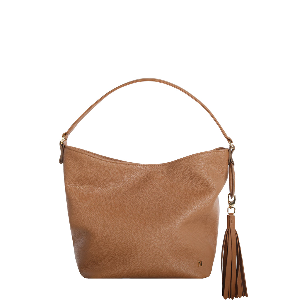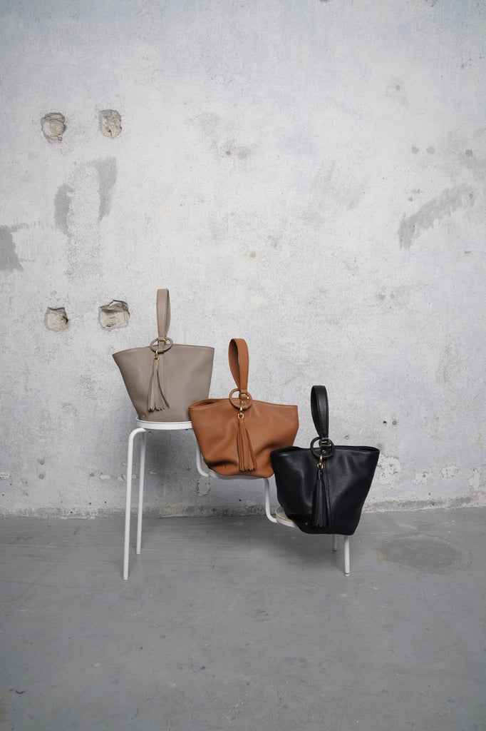 2 in 1 convertible bag which shows fresh and modern approach to shape and structure when designing bags. This hobo bag made from supple pebbled leather, can be a perfect classic shoulder bag. By pulling its handle through a decorative loop, you can easily transform this bag into a different shape to be carried in crook of elbow. Handcrafted with attention to detail. Decorated with a metal ring covered with leather and a tassel.