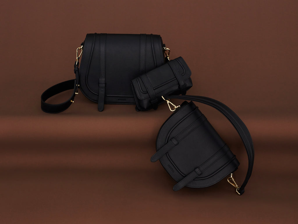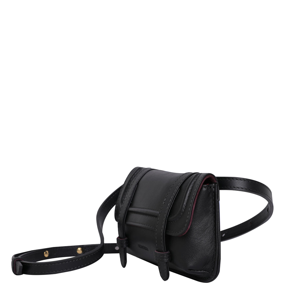 The No.108 mini bag made from buttery smooth leather in black color is designed for versatility, offering two stylish options: wear it around your waist or cross-body with the detachable strap. NOVINSKA handbags are crafted with attention to even the smallest details, following sustainable and thoughtful practices. The flap features their signature ornament, and the leather is cut using zero-waste principles. This chic and timeless piece is the perfect accessory to elevate your outfits. It can also be paired with the larger Saddle Bags or Bowling Bag Maxi from the same collection to create a timeless set.