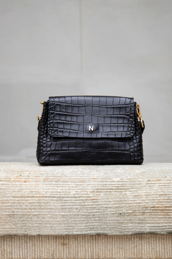 Our bestselling flap bag is crafted from premium, semi-matte crocodile-embossed leather, tanned using eco-friendly vegetable processes. It can be worn on the shoulder or crossbody, making it a versatile choice for everyday use as well as special occasions. Customers love it for its adaptability.